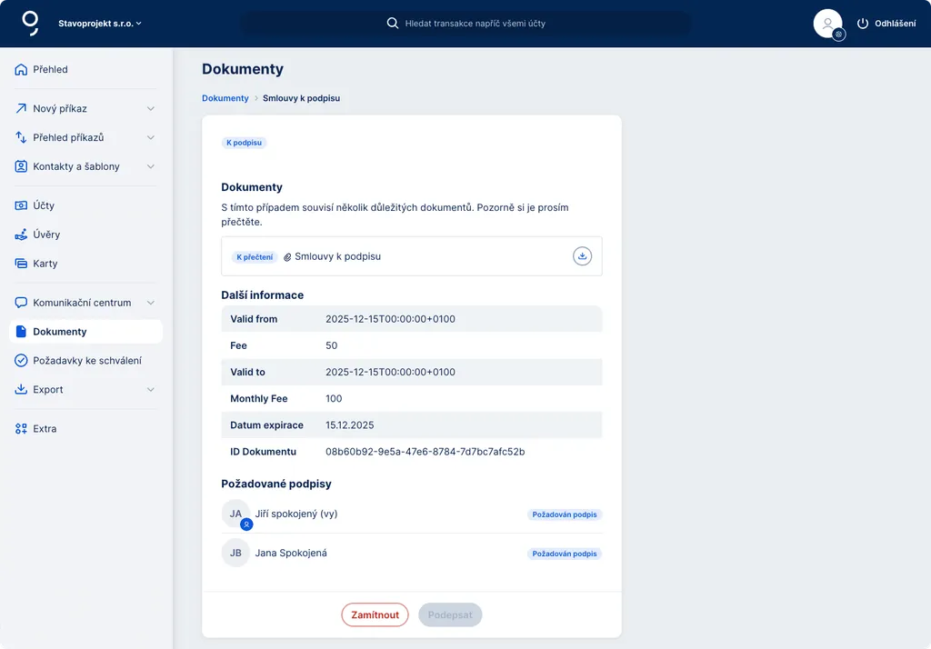 Každý dokument má stanovený termín, obvykle sedm dní, do kdy je možné ho elektronicky podepsat. Pokud termín nestihnete, kontaktujte svého bankéře.
