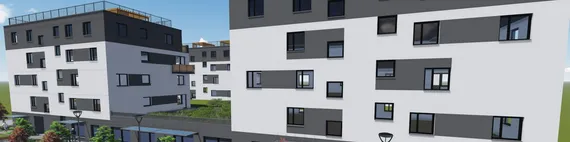 Navazujeme na úspěšnou I. etapu výstavby dvou bytových domů v jižní lokalitě Mnichova Hradiště – v ulici K Vořechu. Jednalo se o 4-podlažní dům s 8 bytovými jednotkami a 5-podlažní dům s 11 bytovými jednotkami.