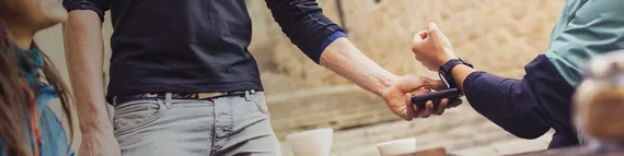 - Přiložte své hodinky k bezkontaktnímu platebnímu terminálu.