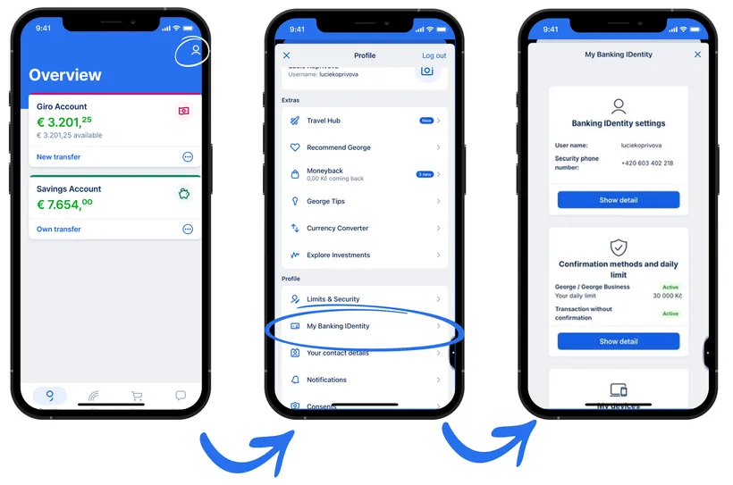 Simply click the user icon in the top right corner and select My Banking IDentity.
